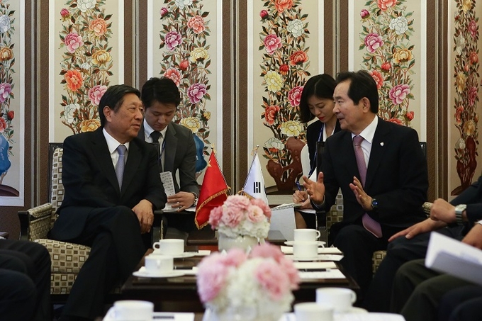 이어 정 의장은 “사드배치와 관련된 중국의 일련의 조치에 대해 납득이 쉽지 않은 부분이 있다”며 “지금부터라도 미래지향적 관점에서 한국 측의 진의가 잘 전달될 수 있도록 충분한 대화를 통해 이 문제가 해결되길 바란다”고 말했다.