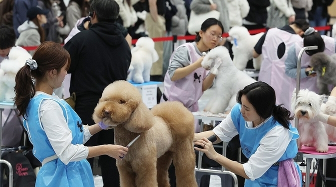 [TV서울=심현주 서울1본부장] 4일 경기도 수원시 권선구 수원메쎄에서 열린 '제9회 리케이 펫아트 페스티벌'에서 실견 부문 참가자들이 기량을 뽐내고 있다.