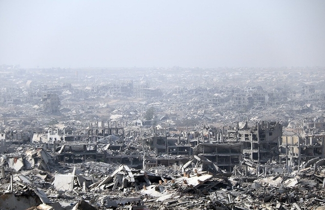 [TV서울=곽재근 기자] 5일(현지시간) 가자지구 북부 셰자이야의 한 이스라엘군 주둔지에서 내려다본 가자시티.