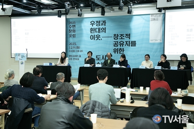 [TV서울=박양지 기자] 영등포문화재단(대표이사 이건왕)은 지난 12월 9일 영등포문화재단 2층 전시실에서 ‘2025 도시수변문화 포럼’을 개최했다. 이번 포럼은 문화도시 영등포 4년 차 사업의 성과를 점검하고, 도시수변문화의 다음 단계 전략을 모색하기 위해 마련된 자리로, 문화예술 관계자와 시민 등 50여 명이 참석해 성황리에 진행됐다.