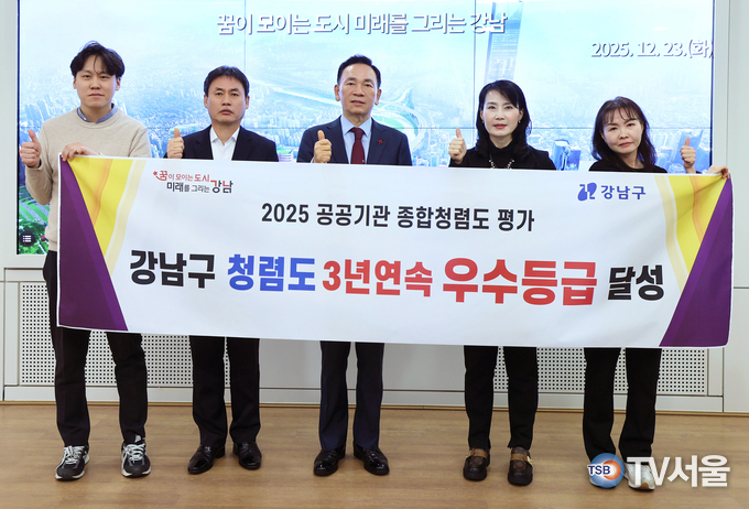 [TV서울=심현주 서울제1본부장] 강남구(구청장 조성명)가 국민권익위원회가 주관한 ‘2025년 공공기관 청렴도 평가’에서 3년 연속 ‘종합청렴도 우수등급’을 받았다.