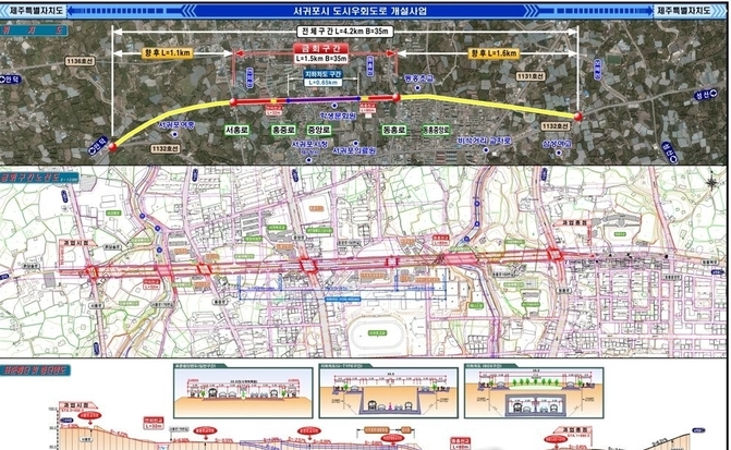 이 사업은 서귀포시 호근동 용당상거리에서 토평동 삼성여고 사거리까지 총 4.3㎞ 구간에 도로를 개설하는 사업이다.