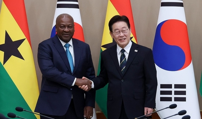 [TV서울=이현숙 기자] 한국과 가나 정부가 11일 이재명 대통령과 존 드라마니 마하마 가나 대통령과의 정상회담을 계기로 기후변화와 해양 안전, 디지털 분야 등의 협력을 강화하기 위한 문서를 채택했다.
