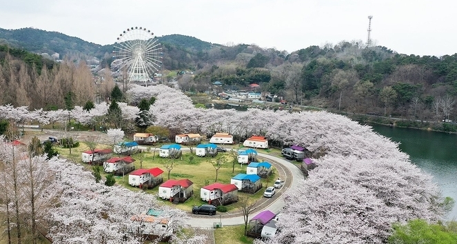 [TV서울=김민규 광주본부장] 1일 광주 북구 우치공원과 패밀리랜드 캠핑장 주변에 하얀 벚꽃이 흐드러지게 피어 있다.