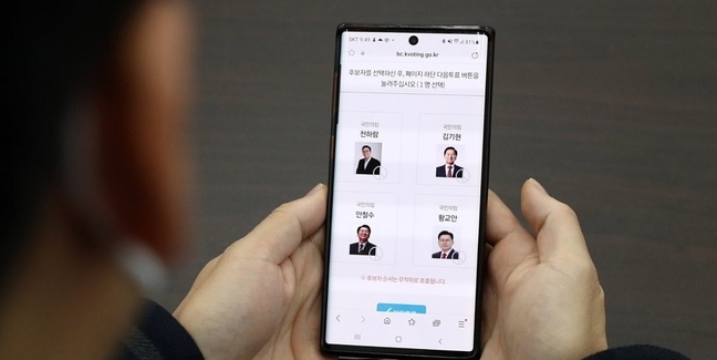 [TV서울=나재희 기자] 국민의힘 차기 지도부를 뽑는 3·8 전당대회 당원 투표가 진행 중인 5일 오전 서울 여의도 국회에서 국민의힘 당직자가 모바일 투표를 하고 있다.