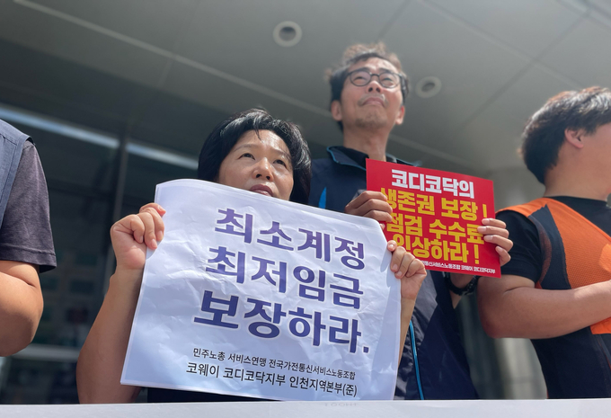 [TV서울=박양지 기자] 정수기·비데 등 가전제품 제조 및 임대 업체 코웨이 소속 방문점검원(코디·코닥)이 최저 임금 보장 등 처우 개선을 촉구하는 목소리를 냈다.