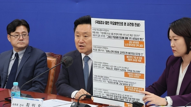 [TV서울=나재희 기자] 국회 국토교통위원회 야당 간사인 더불어민주당 최인호 의원이 18일 국회에서 열린 서울-양평고속도로 특혜 의혹 진상규명 기자 간담회에서 발언하고 있다.