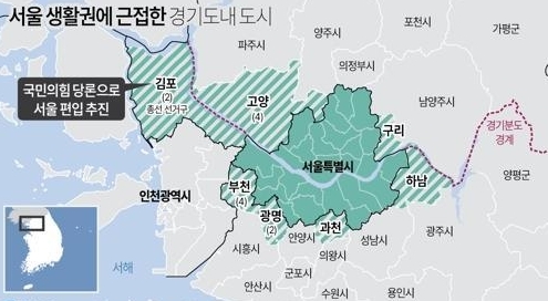 특히 편입 논의가 서울과 인접한 다른 도시로 확대되고 생활권과 행정구역을 일치시키는 쪽으로 전개되면서 일각에서는 김포 전체를 편입 대상에 포함하기 어려울 것이라는 관측도 나오고 있다.