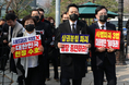 태극기 또는 경광등을 흔들며 응원가를 부르는 이들도 있었다.