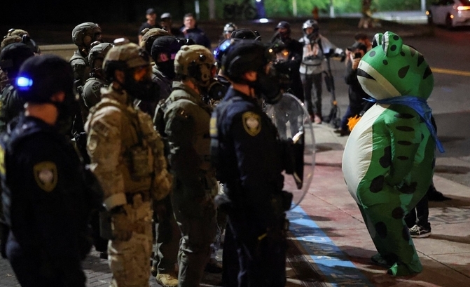 최근 포틀랜드의 시위자들이 개구리, 유니콘, 너구리, 상어, 곰, 공룡, 카피바라 등의 코스튬을 착용하면서 시위 현장의 긴장감이 다소 누그러지고 있다고 뉴욕타임스(NYT)가 11일(현지시간) 전했다.