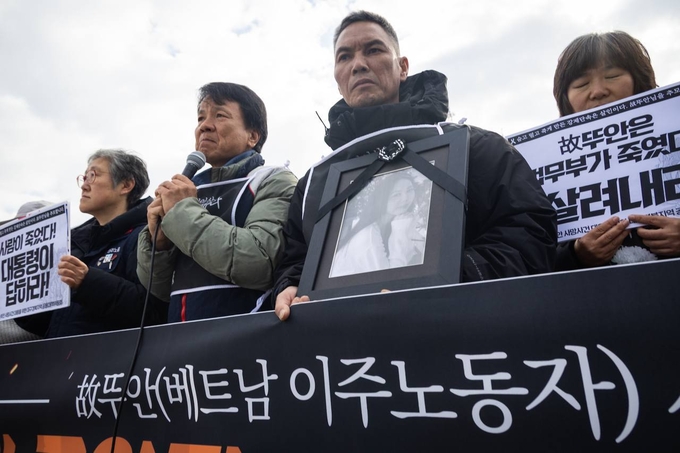 '고(故) 뚜안 사망사건 대응을 위한 대구경북지역 대책위원회'와 이주노동자차별철폐네트워크 등은 오후 용산 대통령실 앞에서 농성 개시 기자회견을 열고 정부와 대통령의 책임 있는 답변을 촉구했다.
