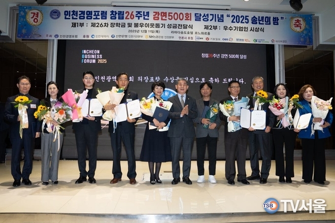 [TV서울=권태석 인천본부장] 인천광역시의회 정해권 의장(국민의힘·연수구1)은 11일 라마다송도호텔에서 열린 ‘인천경영포럼 2025년 송년의 밤’ 행사에 참석해 지역경제 발전을 위해 애쓴 기업인과 회원사를 격려했다.