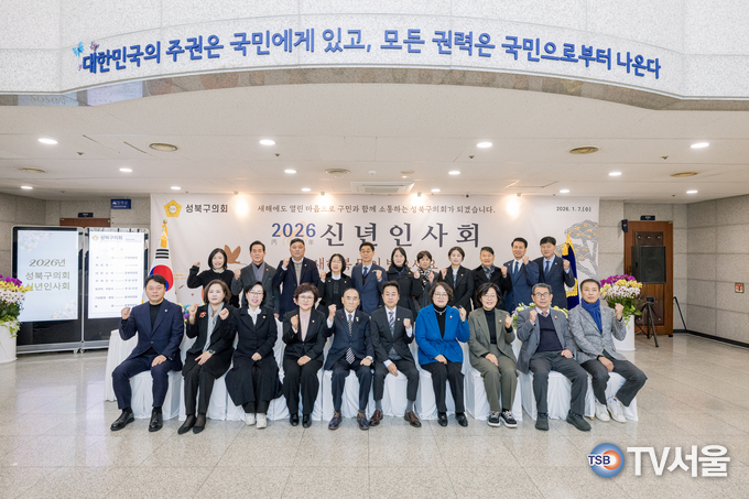 [TV서울=변윤수 기자] 성북구의회(의장 임태근)는 7일 오전 10시 의회 청사 1층 로비에서 2026년 신년 인사회를 성황리에 개최하였다.