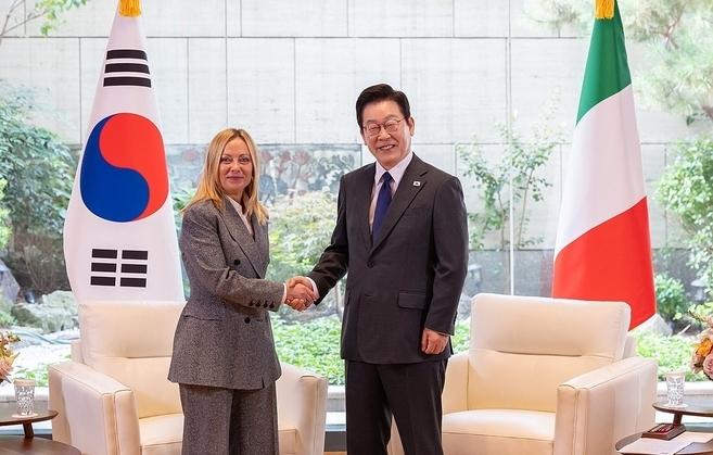 멜로니 총리는 이 대통령이 청와대에 복귀한 뒤 처음으로 맞이하는 외국 정상이자 현 정부 출범 후 방한한 첫 유럽 국가 정상이다.