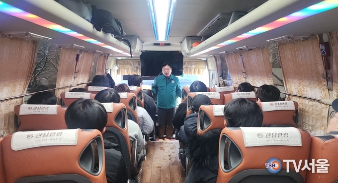 [TV서울=이천용 기자] 서울지방병무청(청장 문경식)은 2월 2일 오전 8시 40분, 사회복무요원 교육생 단체 수송이 실시 되는 청사 내 교육생 집결 현장에서 안전관리 실태를 점검했다.
