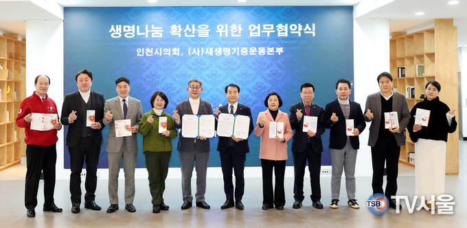 [TV서울=권태석 인천본부장] 인천광역시의회(의장 정해권)는 2일 시의회 본관 1층 중앙홀에서 정해권 의장을 비롯해 윤재상·박판순·신충식·이선옥·조성환 의원, 새생명장기기증운동본부 민창기 이사장 및 본부 관계자 등이 참석한 가운데 공익법인 새생명장기기증운동본부와 생명나눔 인식 개선 및 장기기증 문화 확산을 위한 업무협약(MOU)을 체결했다. 이번 협약을 통해 양 기관은 ▶생명나눔 인식 개선을 위한 공동 사업 추진 ▶장기기증 문화 확산을 위한 협력 ▶상호 기관 발전을 위한 교류 등 다양한 분야에서 상호 협력해 나가기로 했다. 특히, 협약 체결을 계기로 생명나눔의 필요성에 공감한 일부 시의원 및 의회사무처 직원들은 현장에서 생명을 살릴 수 있는 중요한 사회적 기여 중 하나인 장기기증 희망등록 신청에 직접 참여해 의미를 더했다. 정해권 의장은 “이번 업무협약은 생명 존중 문화를 확산시키기 위한 의미 있는 출발점”이라며 “인천시의회는 앞으로도 시민과 함께 생명나눔 문화가 정착될 수 있도록 적극 협력하겠다”고 말했다. 장기기증 희망등록에 참여한 박판순 의원은 “장기기증은 누구나 할 수 있는 가치있는 행동이며, 소중한 생명을 구할 기회이므로 이러한 인식 전환에 따른 장