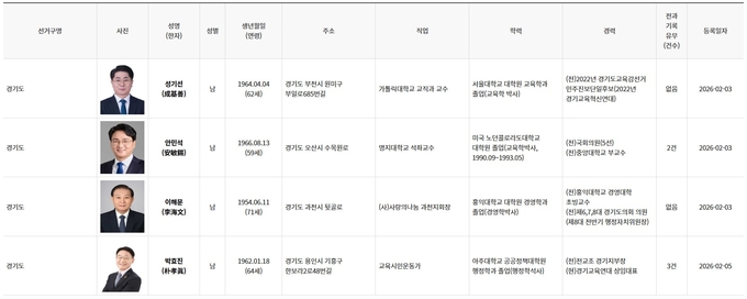 현재 경기도교육감 예비후보는 안민석 명지대 석좌교수를 비롯해 성기선 가톨릭대 교직과 교수, 이해문 (사)사랑의나눔 과천지회장, 박효진 경기교육연대 상임대표 등 4명이다.