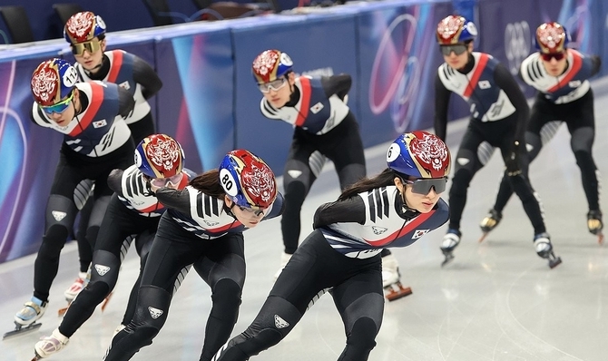 [TV서울=변윤수 기자] 11일(현지시간) 이탈리아 밀라노 아이스스케이팅 아레나에서 쇼트트랙 김길리가 훈련을 하며 밝은 표정을 짓고 있다.