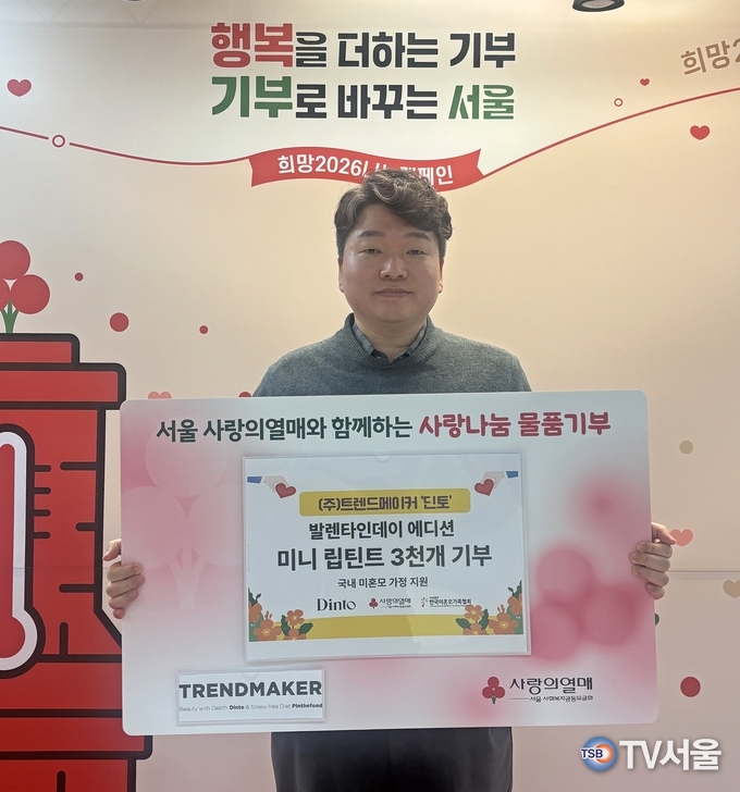 신혜영 서울 사랑의열매 사무처장은 “발렌타인데이를 맞아 전해진 딘토의 따뜻한 나눔이 미혼모 가정에 의미 있는 응원이 될 것”이라며 “전달받은 물품은 도움이 필요한 가정에 소중히 전달하겠다”고 말했다.