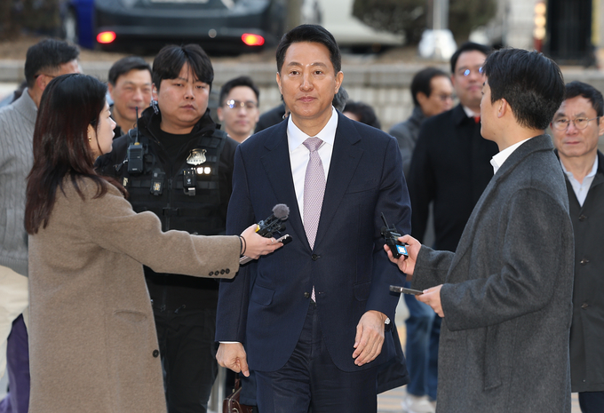 오 시장은 이날 법정에 출석하면서 취재진에 "재판과 선거 기간이 정확하게 일치한다"며 특검의 기소 시점에 의구심을 나타냈다.