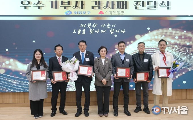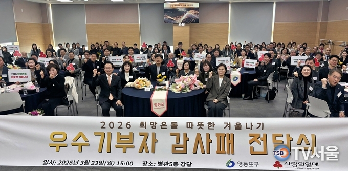 [TV서울=변윤수 기자] 영등포구는 23일 오후 구청 별관 5층 강당에서 이웃을 생각하는 따뜻한 마음을 보여준 ‘2026 희망온돌 따뜻한 겨울나기 우수기부자 감사패 전달식’을 개최했다.