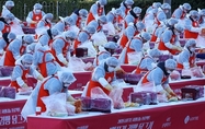 [TV서울=곽재근 기자] 3일 부산 동래구 사직야구장 광장에서 열린 1만포기 김장담그기 행사에서 롯데 임직원들이 이웃에게 나눠 줄 김장을 하고 있다. 올해로 15회째를 맞은 롯데의 대표적인 지역 상생 프로그램인 1만포기 김장 담그기 행사는 부산지역 롯데 21개 계열사 임직원 100여명이 참가했다.
