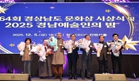 [TV서울=박양지 기자] 경남도는 지역 문화예술 발전에 기여한 7명에게 제64회 '경상남도 문화상'을 수여했다고 6일 밝혔다. 전날 창원컨벤션센터에서 열린 '경남예술인의 밤' 행사에 박완수 경남지사가 참석해 시상했다. 고(故) 김주석 화백(학술·교육), 김미숙 시인(문학), 김진량 통도요 대표(조형예술), 전민규 큰들문화예술센터 예술감독(공연예술), 리영달 치과의사(문화·언론), 이수소 경남체육발전협의회 의장(체육), 최성진 '따가다가 아트컴퍼니' 대표(청년)가 경상남도 문화상을 받았다. 고 김주석 화백은 항일 독립운동가면서 생전에 2만여점에 달하는 작품 활동과 마산미협 창립 등 지역 미술 기반 조성에 기여한 공적을, 김미숙 시인은 1998년 등단 후 시집 8권, 그림동화 11권을 펴내며 창작활동을 이어온 점을, 김진량 통도요 대표는 전통 도자 연구, 창작에 매진한 점을 각각 인정받았다. 또 전민규 예술감독은 40여년간 마당극 창작과 연출에 힘써온 점이, 리영달 치과의사는 1961년 사진동호회 창설을 시작으로 평생 지역 인물과 풍경, 각종 문화행사를 기록한 점이, 이수소 의장은 수영, 세팍타크로 등 다양한 종목에서 지도·운영을 맡아 선수 육성, 경기력 향상을