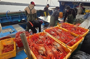 [TV서울=곽재근 기자] 5일 강원 강릉시 주문진항에서 외국인 선원들이 조업해 잡아 온 겨울 진미 홍게를 배에서 내리고 있다.