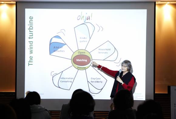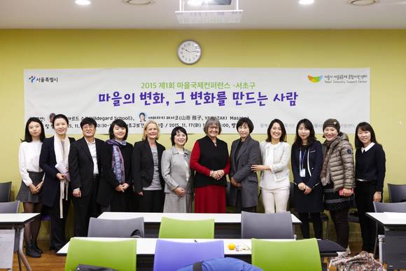 ‘제1회 마을국제컨퍼런스’의 첫 날인 16일에는 일본과 독일에서 활발히 활동하는 마을활동가들이 서초구를 방문해 ‘마을 내 여성의 성장과 마을공동체의 지속성을 위한 방안’을 주제로 강연을 펼쳤다. 일본 도쿄 네리마구에서 활동중인 마사코 야마자키(Masako Yamzaki)는 이번 강연에서 도쿄 네리마구 ‘네리마 어머니 연락회’를 중심으로 한 여성들의 주민운동에 관한 얘기를 들려줬다. 1950년 후반에 결성된 ‘네리마구 어머니 연락회’는 오랜 기간 동안 여성 주민운동의 네트워크 역할을 하였고, 특히 주체적 시민으로서의 여성 성장에 크게 기여한 바 있다. 또, 독일의 마을활동가 힐데가르드 쇼쓰(Hildegard Schooβ)는 1985년 독일 잘츠기터(Salzgitter)에 있는 ‘마더센터’의 창립 멤버 중 한명으로, 다세대주택의 개념을 새롭게 해석하여 전 세대를 아우르는 마을공간인 ‘공공거실’에 대한 얘기를 들려줬다. ‘마더센터’는 마을 주민의 모두 이용하는 공동의 공간을 지향한다는 점에서 서초구의 전국 최초 일반주택지역 관리사무소로 건립된 ‘반딧불센터’와 유사한 점이 많다.