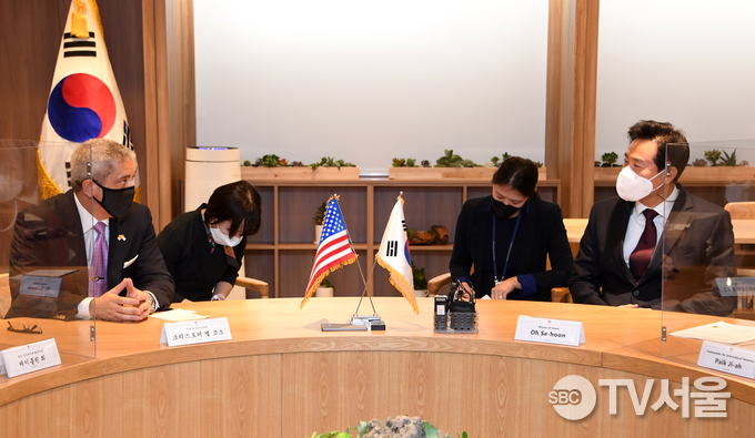 오 시장은 크리스토퍼 델 코소 주한 미국대사 대리의 예방을 받아 ‘한미 우호협력 방안’을 화두로 대화를 나눴다.