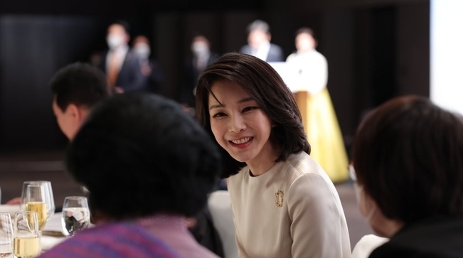 [TV서울=이현숙 기자] 윤석열 대통령 부인 김건희 여사는 21일 저녁 윤 대통령 주최 환영 만찬에 잠시 들러 조 바이든 미국 대통령과 인사한다.
