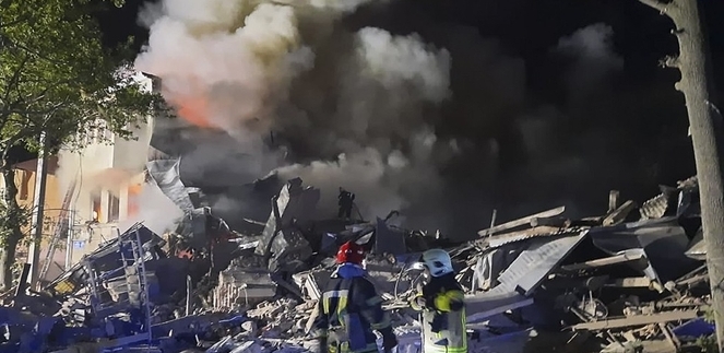 [TV서울=나재희 기자] 17일(현지시간) 우크라이나 동부 하르키우 살티우카 주거지역에 러시아군 포격으로 화재가 발생하자 구조대원들이 진화에 나서고 있다. 올레흐 시네후보우 하르키우주 주지사는 이 포격으로 최소 6명이 숨지고 16명이 다쳤다고 밝혔다.
