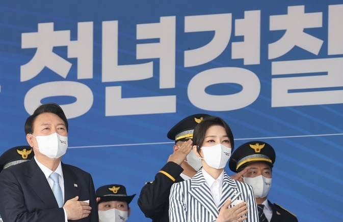 앞서 민주당 신현영 대변인은 브리핑을 통해 "경찰 수사를 받는 김 여사의 경찰학교 방문 및 졸업생 간담회는 부적절한 행보"라며 "경찰의 '봐주기 수사'에 화답이라도 하듯 경찰학교를 방문한 것이냐"고 비판했다.