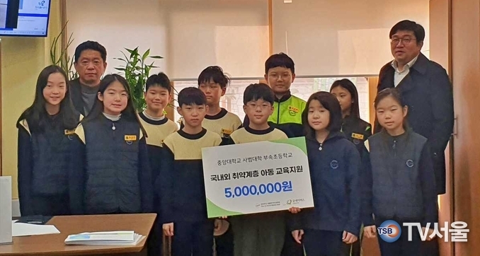 [TV서울=변윤수 기자] 굿네이버스 서울남부지부(지부장 정종훈)는 중앙대학교사범대학부속초등학교(교장 강철민,)로부터 국내외 아동 교육 지원을 위한 후원금 5백만 원을 전달받았다고 9일 밝혔다. 중대부초에서 진행된 이번 전달식에는 정종훈 굿네이버스 서울남부지부장, 강철민 중대부초 교장과 함께 4학년 학생임원들이 참석해 의미를 더했다.