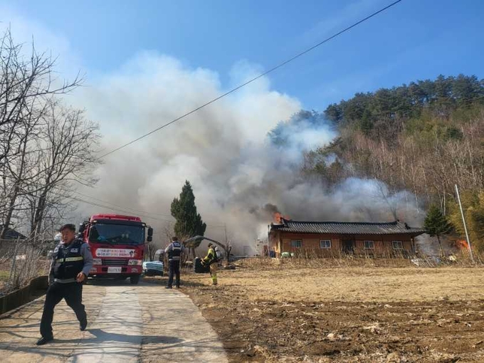 산림 및 소방 당국은 "주택에서 난 불이 산으로 옮겨붙었다"는 신고를 받고 헬기 5대와 장비 33대, 진화대원 등 181명을 투입해 오후 1시 40분경 주불 진화를 마치고 잔불을 정리하고 있다.