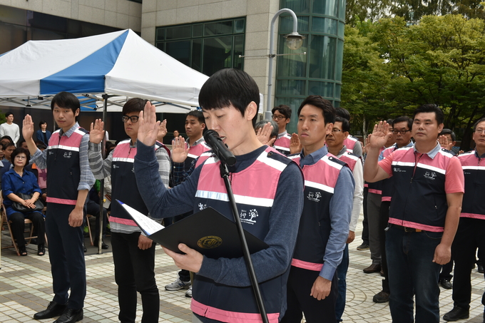 중랑구가 7일 오전 10시 30분 중랑구청 중앙광장에서 '날쌘돌이 현장기동대' 발대식을 개최하고 본격 운영에 나섰다.
