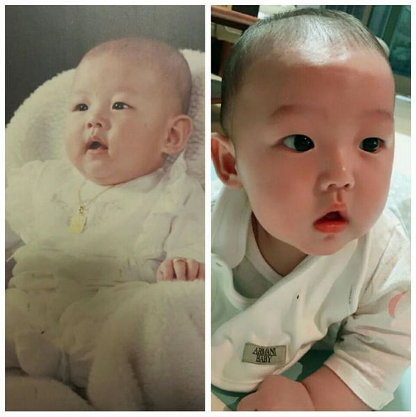 동호의 100일 사진과 그를 쏙 빼닮은 아셀의 100일 사진을 붙여놓아 닮은꼴 외모를 뽐낸 것이다.