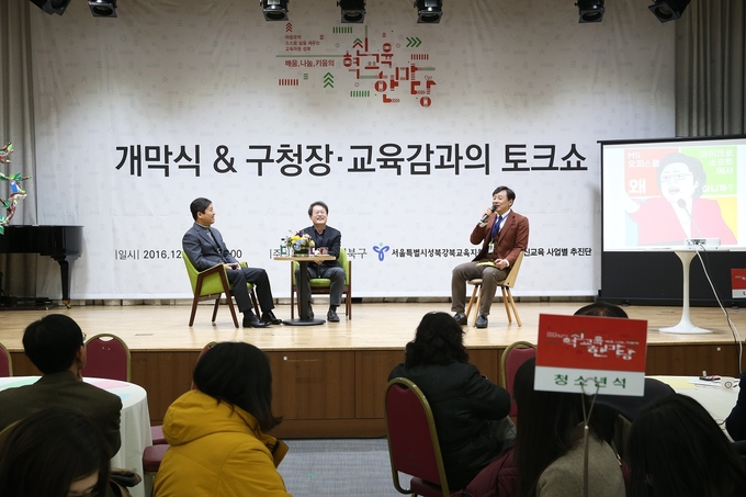 개막식은 구청장・교육감과의 토크쇼와 함께 진행되어 아이들이 행복한 교육을 위해 풀어야 할 여러 현안들을 논의했다.