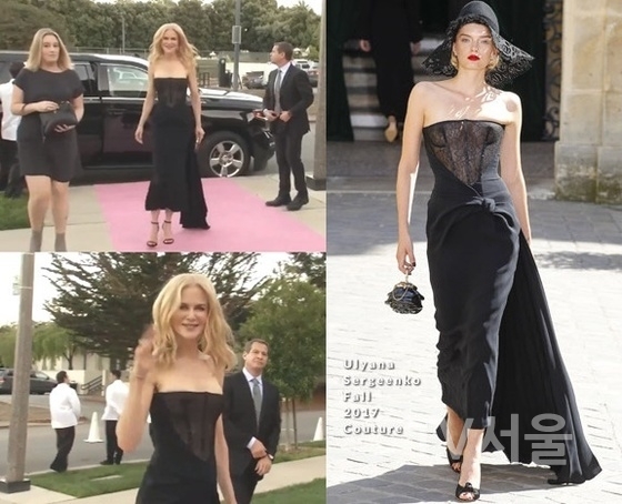 이날 행사에서 키드먼는 앞면이 시스루 코르셋 스타일인 블랙 드레스를 걸쳤는데, 가슴 부위가 보일락 말락 하는 아찔한 독특한 의상이었다. 이는 러시아 출신 모델이자 디자이너 율리아나 세르젠코의 2017 가을 신상인 것으로 알려졌다.