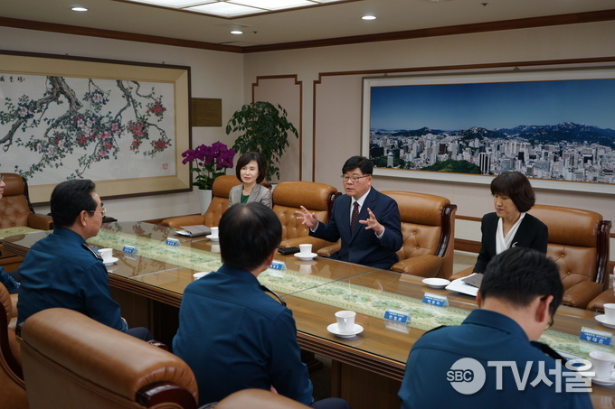 [TV서울=신예은 기자] 김종호 서울병무청장은 10일 서울지방경찰청을 방문, 원경환 청장과 환담을 갖고 사회복무요원 복무관리에 대한 업무협의를 했다.