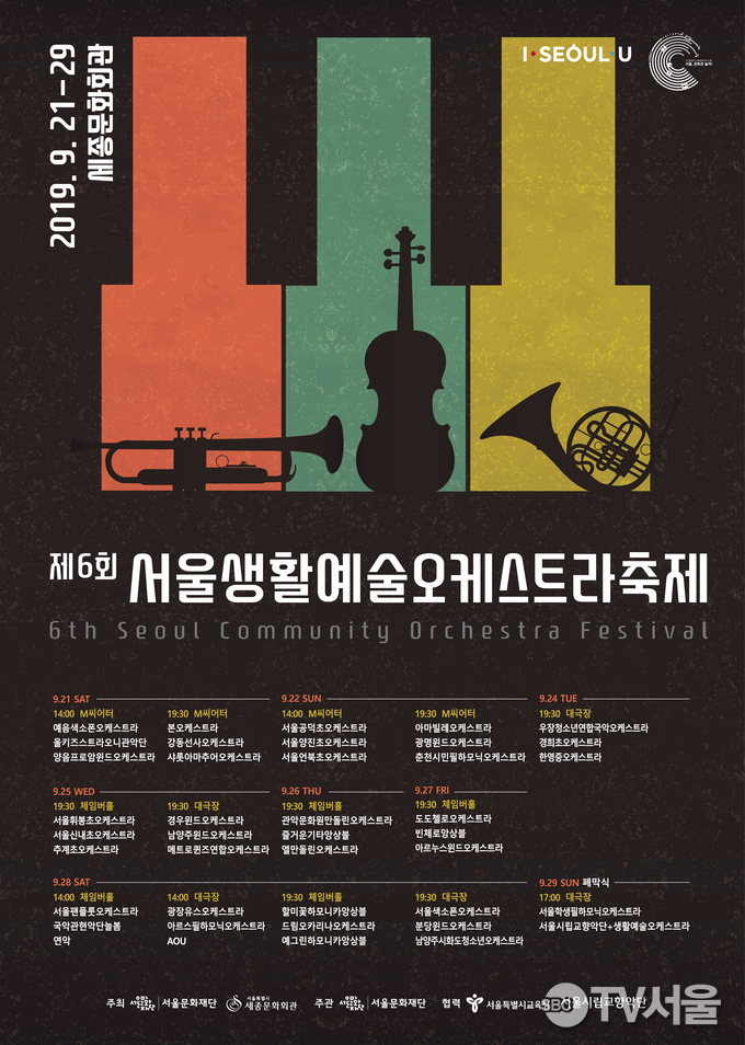 [TV서울=변윤수 기자] 서울문화재단(대표이사 김종휘)은 일상 속 예술의 즐거움을 발견하고 확산시키는 장을 마련하고자 21일 ‘서울생활예술오케스트라축제’와 ‘위댄스 페스티벌’을 세종문화회관과 여의도 한강공원에서 각각 개최한다.