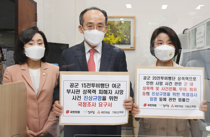 [TV서울=이천용 기자] 국민의힘, 정의당, 국민의당, 기본소득당은 10일 공군 여군 부사관 성추행 사망 사건에 대해 공동으로 국정조사와 특검을 요구했다.