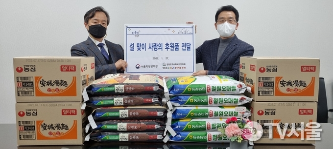 [TV서울=나재희 기자] 서울지방병무청(청장 임재하)은 설 명절을 앞두고 27일 영등포 사랑나눔 푸드뱅크·마켓(1호점)에 방문하여 쌀․라면 등 위문품을 전달했다. 지원한 물품은 푸드뱅크·마켓 등을 통하여 영등포구에 거주하는 긴급지원대상 및 수급탈락자, 차상위 등 복지취약계층에게 제공되어 따뜻한 명절 온기를 나눌 예정이다.
