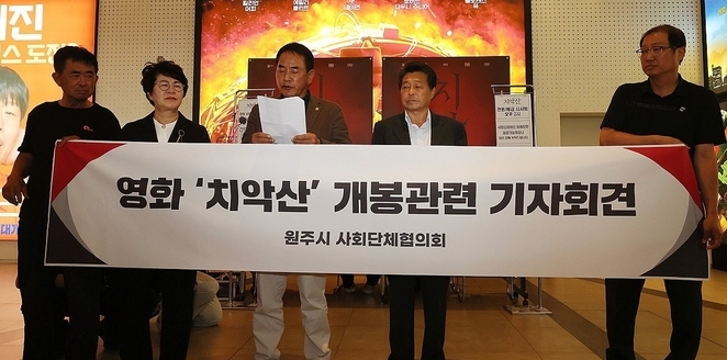 김정윤 시 사회단체협의회장은 "치악산에서 촬영하지도 않았음에도 허구의 내용을 기반으로 지역 이미지만 실추시키는 영화 상영을 강행하는 영화제작사를 규탄한다"며 "상영금지 가처분이 한시라도 빨리 인용되길 바란다"고 말했다.