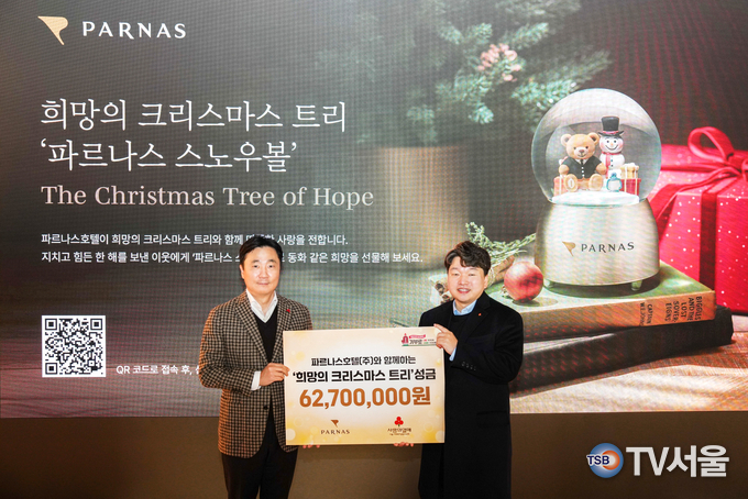 [TV서울=신민수 기자] 서울 사회복지공동모금회(이하 서울 사랑의열매, 회장 김재록)는 파르나스호텔(대표이사 여인창)이 ‘희망의 크리스마스 트리’ 캠페인의 판매 수익금을 강남구 저소득층 지원을 위해 ‘2025 희망온돌 따뜻한 겨울나기 캠페인’에 전액인 6,270만 원을 기부했다고 밝혔다.