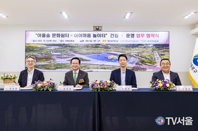 [TV서울=변윤수 기자] 영등포구가 10월 23일 현대해상, 루트임팩트, 코끼리공장과 함께 ‘어울숲 문화쉼터×아이마음 놀이터’ 건립과 운영을 위한 다자간 업무협약을 체결했다고 밝혔다.