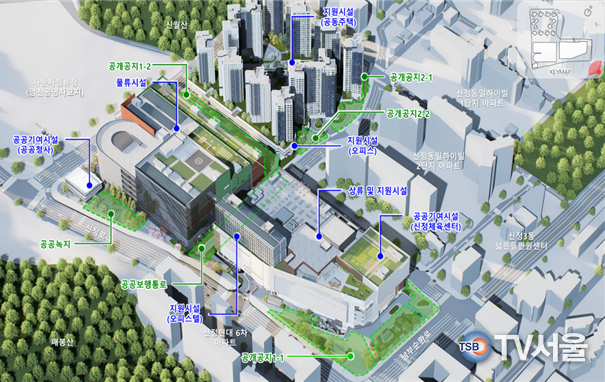 또 창업기업 입주공간, 창업상담·지원실, 회의공간, 휴게공간, 강당 등으로 구성된 ‘창업지원센터(5,421㎡)’와 수영장, 피트니스룸, 스쿼시, 볼링장, 탁구장, 스크린골프, 실내테니스장, 다목적체육관 등을 갖춘 ‘신정 체육센터(17,050㎡)’도 신설한다.