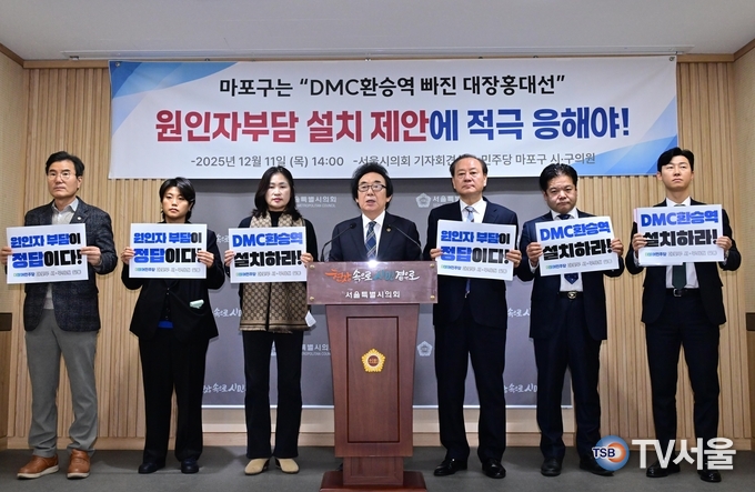 [TV서울=변윤수 기자] 다가오는 12월 15일 대장홍대선 착공식을 앞두고, 서울시의회 김기덕 의원(마포4, 더불어민주당)은 주민과 약속의 하나로 추진했던 ‘대장홍대선 착공’을 즈음해, 서부권 지하철 시대를 열게 되어 축하한다고 밝히며, DMC 환승역이 빠진 대장홍대선의 문제를 지적하고, 지자체가 원인자 부담으로라도 설치해야 함을 촉구 제안하는 긴급 기자회견을, 12월 11일 서울시의회 기자회견장에서 더불어민주당 마포구 의원과 함께 개최했다.