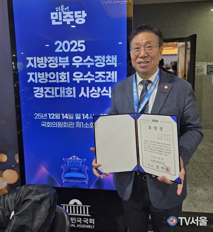 [TV서울=이현숙 기자] 금천구의회 이인식 의원(더불어민주당, 가산‧독산1동)이 지난 12월 14일 국회에서 열린 더불어민주당 참좋은지방정부위원회 주최 ‘2025 지방정부 우수정책‧지방의회 우수조례 경진대회’에서 우수상을 수상했다.