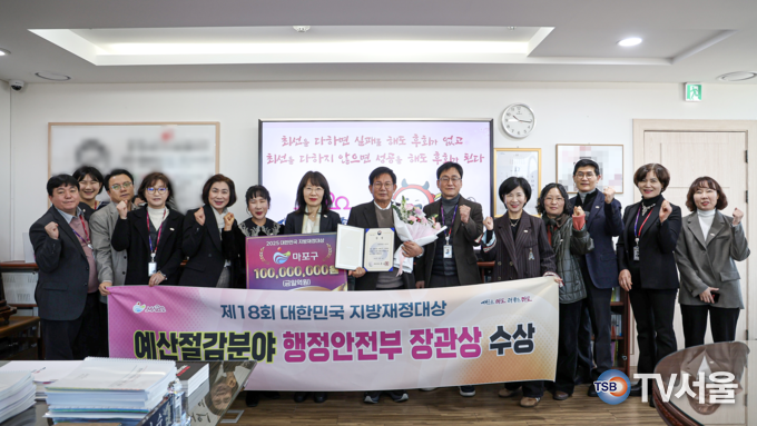 [TV서울=신민수 기자] 마포구(구청장 박강수)는 12월 17일, 행정안전부가 주관한 ‘제18회 대한민국 지방재정대상’에서 예산절감 분야 행정안전부 장관상을 수상하고 인센티브로 특별교부세 1억 원을 확보했다.